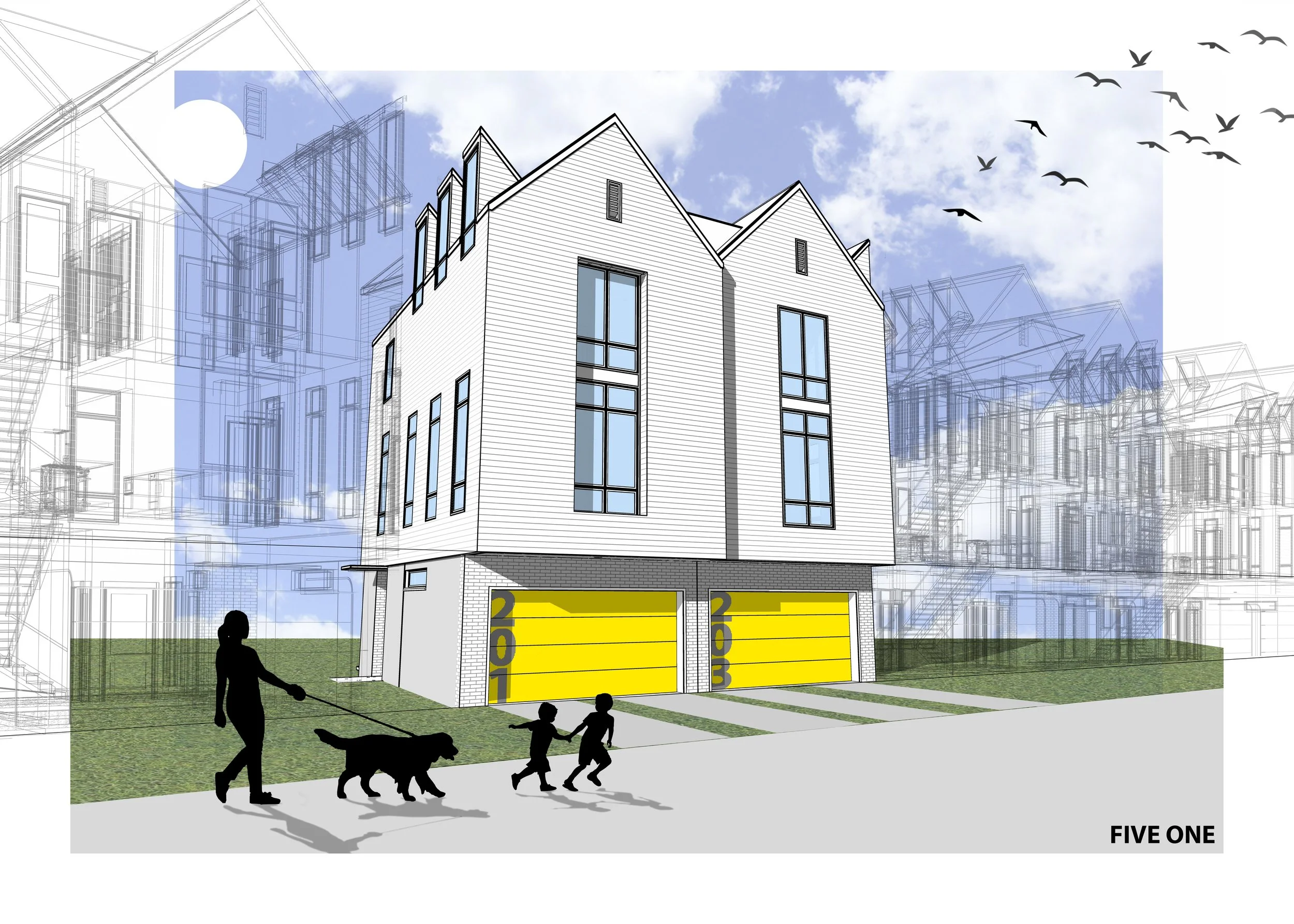 Union Station Townhomes is a modern three-story duplex designed with an emphasis on both practicality and contemporary urban living in the vibrant city of Memphis, TN. This thoughtfully planned project features a ground-level garage, offering convenient parking and storage space for each unit. The second floor is a dynamic open-concept living area that combines a spacious living room with a well-appointed kitchen, creating a seamless environment for daily living and entertaining. Large windows flood the space with natural light, blurring the boundary between indoor and outdoor spaces.
